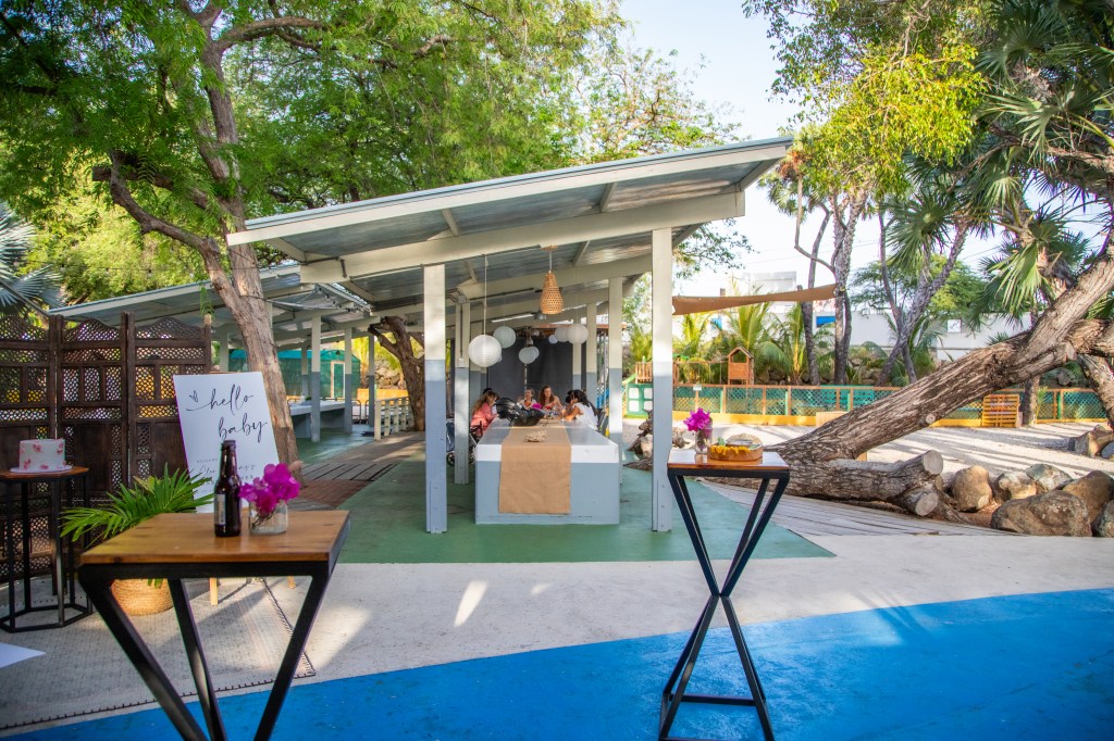 - basic seating arrangements (20 black plastic chairs, 3 adult picknick tables, 3 kids picknick tables)